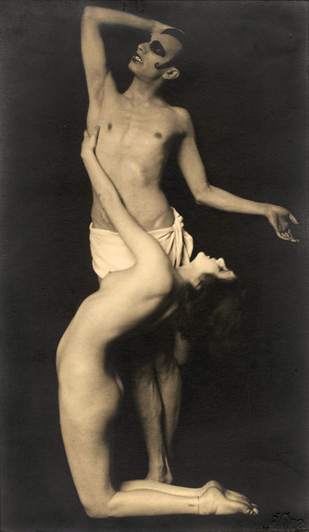 In November 1922, in the midst of the economic crisis, Vienna only had one topic of conversation: Anita Berber and her dances of vice, horror and ecstasy. Together with her partner Sebastian Droste, she brings taboo topics such as drug abuse, suicide and homosexual desire to the stage. In order to promote the scandalous program, the duo appears in front of Madame d’Ora’s camera. Berber has been working with the Viennese portrait photographer for years on staging her sophisticated game of calculated shock and dance art. These darkly dramatic photographs not only illustrate numerous newspaper articles, but also Berber’s only publication. In it she gives insight into her world of thoughts, criticizes the hysteria surrounding her and at the same time fuels it anew.