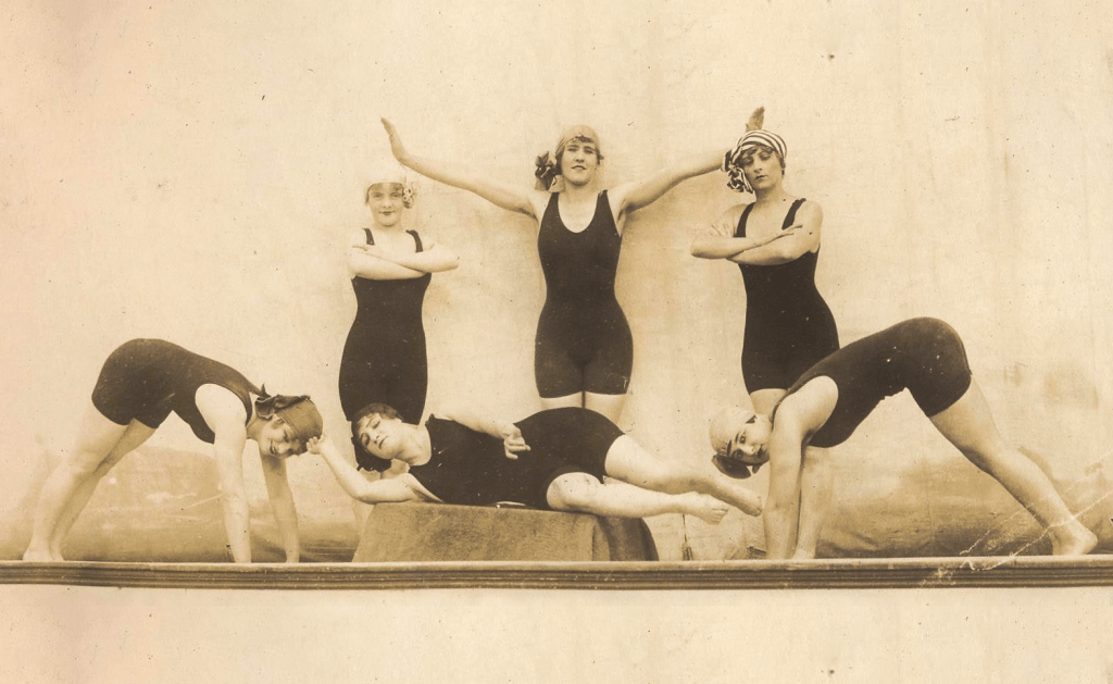 Six Diving Nymphs. Performers in Charles T. Earl’s aquatic vaudeville act. The 17 Oct., 1915 issue of the New York Clipper commented on the act’s Saturday night, 10 October performance at Dale’s Theater, 116th street; “Mr. Earl has a classy looking half dozen girls in his act and each is a graceful performer, besides showing up well in abbreviated different colored union suits.” | src gt_hawk63 on Flickr