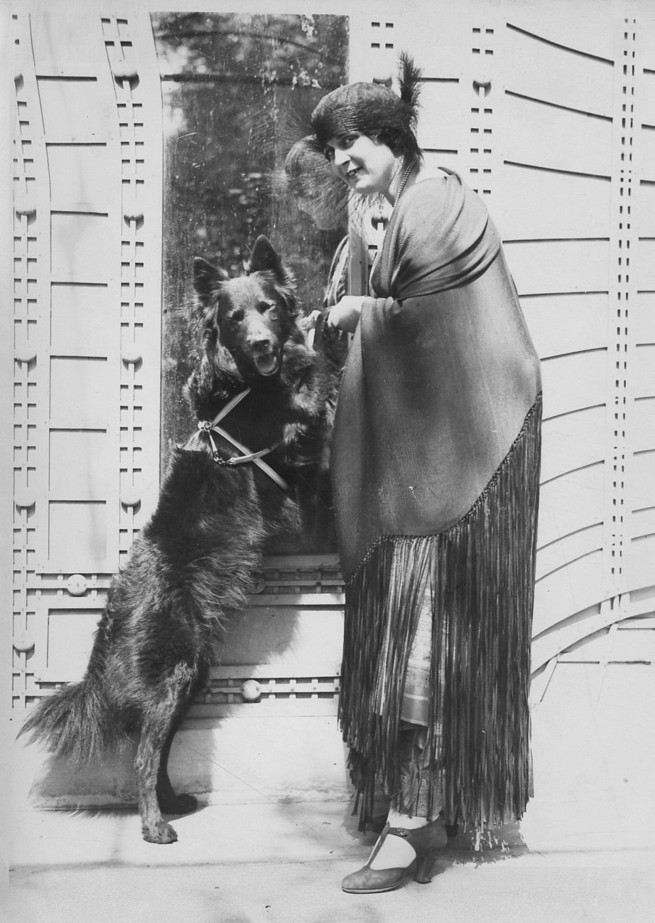 Photograph of Anna Pavlova with a pet dog, undated. Photographer