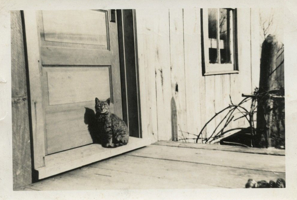 Elmer, the Kitten, Waits at Your Door for His Breakfast, vintage snapshot, 1920′s / via