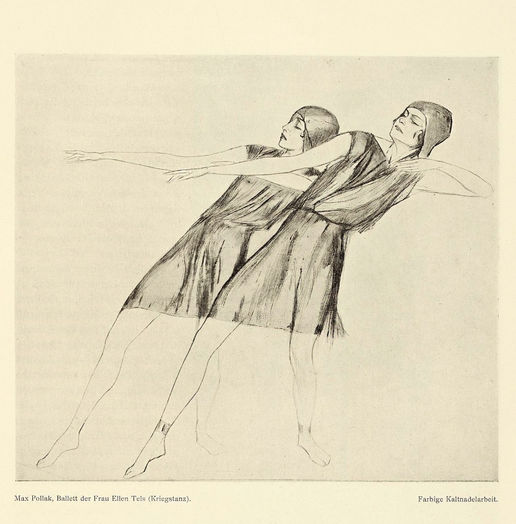 Max Pollak :: Ballett der Frau Ellen Tels (Kriegstanz). Farbige Kaltnadelarbeit. (Ballet of Mrs. Ellen Tels (War Dance). Color drypoint.) Die Graphischen Künste. Gesellschaft für Vervielfältigende Kunst (editor), Wien, 1924. | src Universitätsbibliothek Heidelberg related post