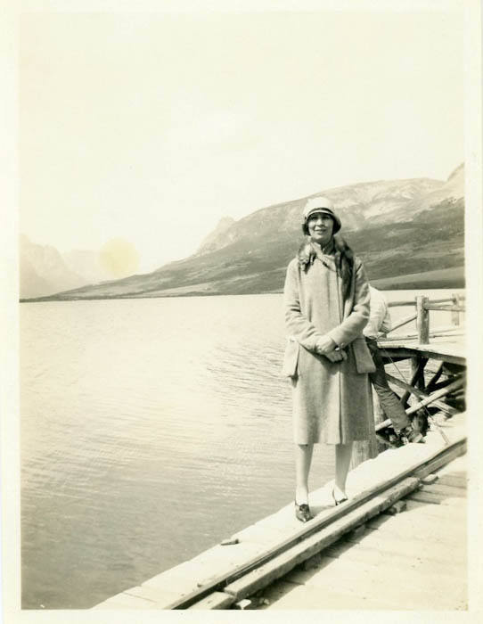 Vernacular Photo of Woman Wearing Hat and Fox Scarf at Boat Pier. / src: D&R photos