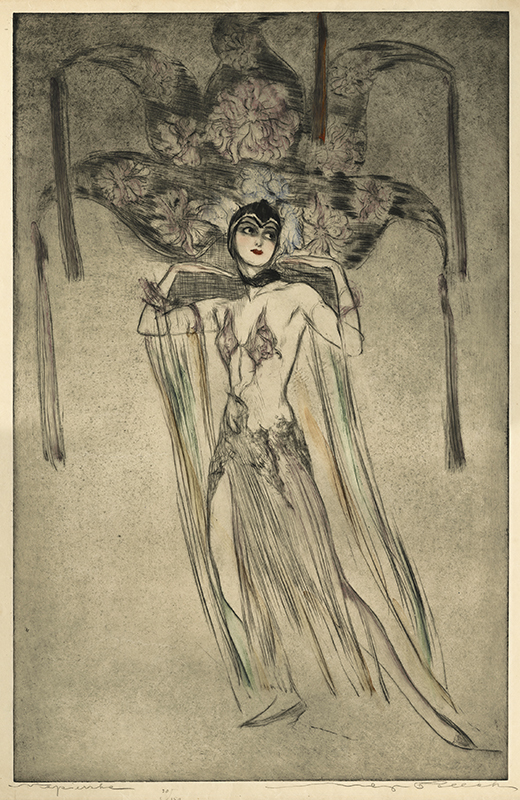 Kitty Starling, ca. 1925 Max Pollak :: Die Tanzerin Kitty Starling, ca. 1925. Drypoint with hand applied color. | src Annex Galleries