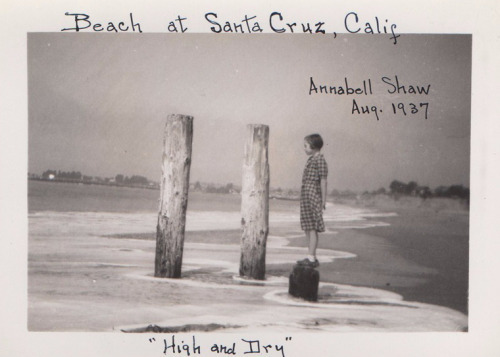 Beach at Santa Cruz, CA. Annabell Shaw, Aug. 1937 “High and dry” / via punlovsin