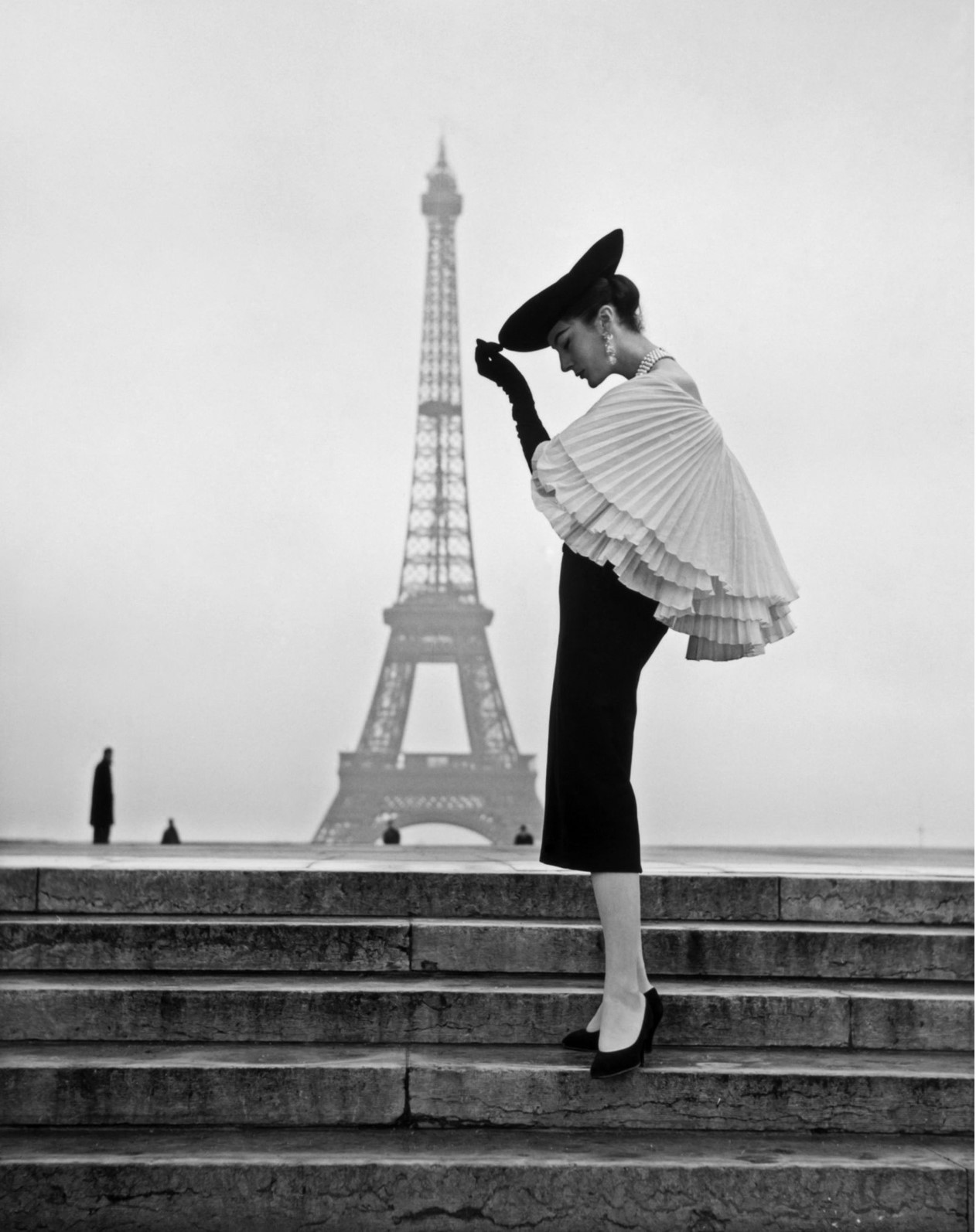 Lillian Bassman :: Barbara Mullen | Eiffel Tower, Paris, 1949