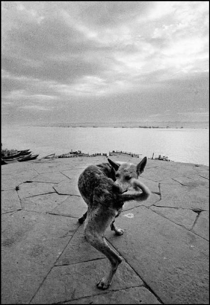 Ferdinando Scianna :: Dog on the ghat, Benares, India, 1972 / src: magnum photos