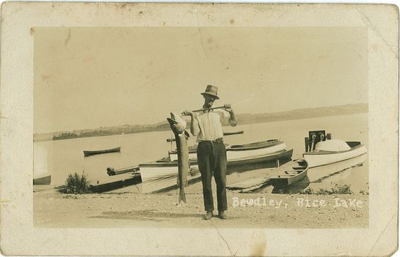 Man holding a muskie in Bewdley, Rice Lake, Ontario. ca. 1920’s. src: Northumberland County Archives