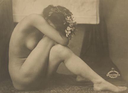 František Drtikol :: Akt ženy s věnečkem a kubistickým pozadím | Nude woman with wreath and cubist background, 1920s. | src Umělecká fotografie | related post | more [+] by this photographer