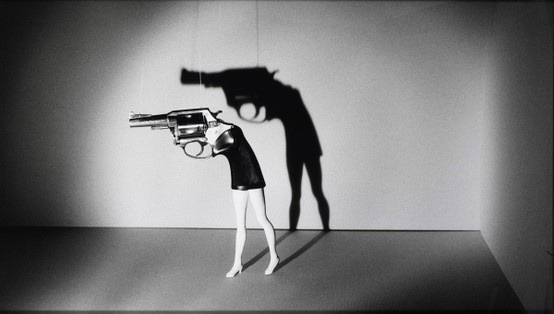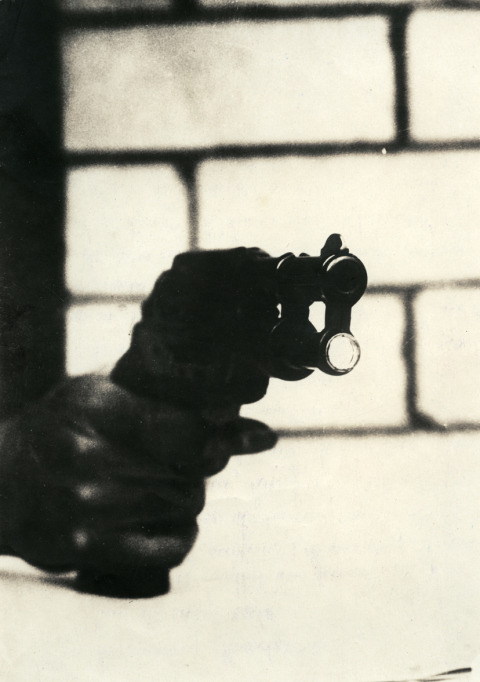 Alexander [Sasha] Stewart :: A Shot at Art. A woman takes aim with a gun, and prepares to shoot a man standing in front of a canvas, in a scene from the play `Fortunato’, 1928. | src Getty Images