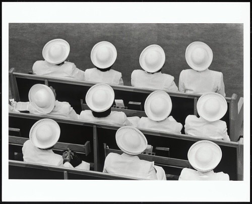 Jason Miccolo Johnson :: Members of the Stewardess Board sit together dressed in all white suits at the Greater Allen Cathedral of New York, Jamaica, New York, 2000 – gelatin silver print / via