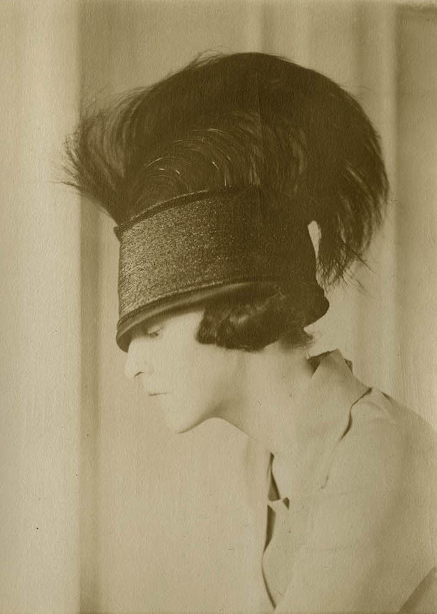 Charles Sheldon :: Vintage photograph featuring a model posed in profile to best show off her hat which dips dramatically over one eye and sports a jaunty feather plume on top. Taken by American illustrator and amateur photographer Charles Sheldon,