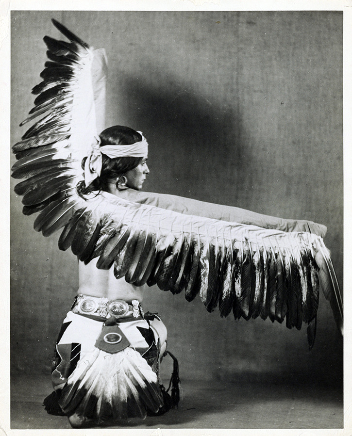 Käsebier photographed Zitkala-Sa in tribal dress and western clothing, clearly identifying the two worlds in which this woman lived and worked. In many of the images, Zitkala Sa holds her violin or a book, further indicating her interests. Käsebier experimented with backdrops, including a Victorian floral print, and photographic printing. She used the painterly gum-bichromate process for several of these images, adding increased texture and softer tones to the photographs. (quoted from NMAH)