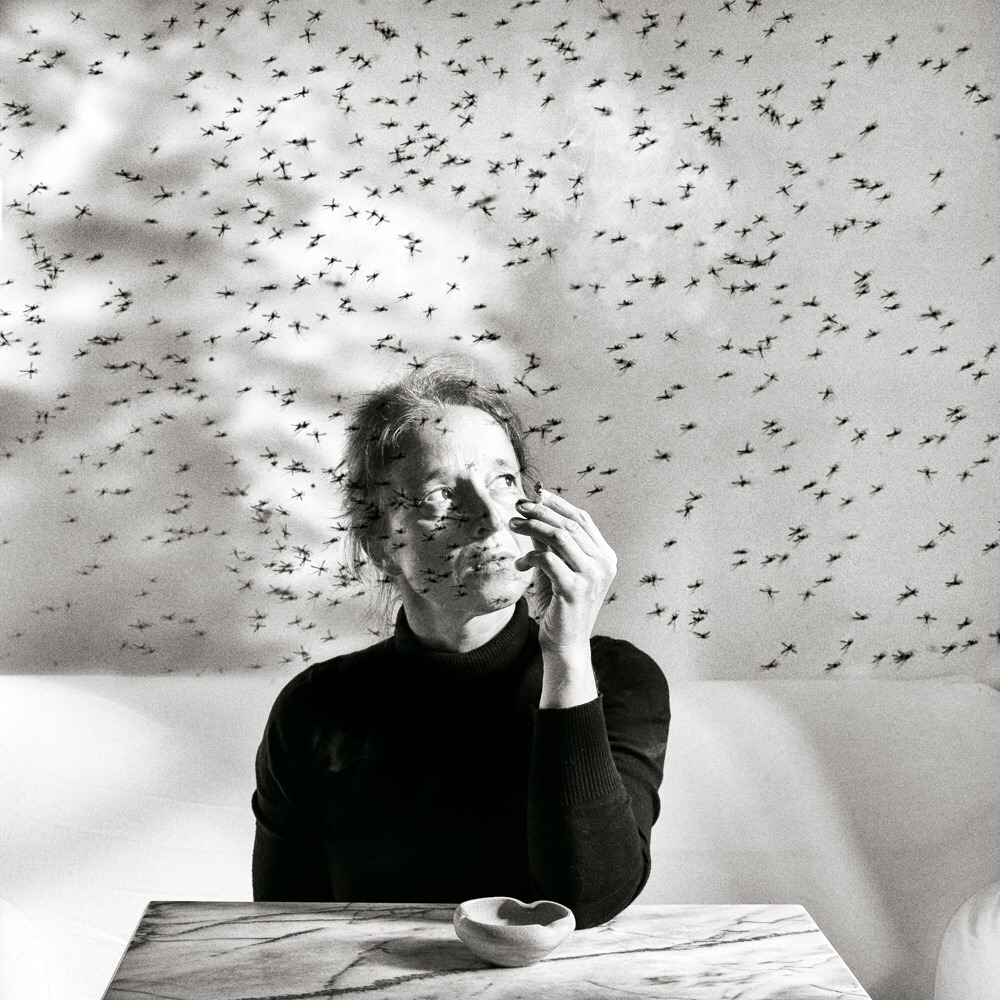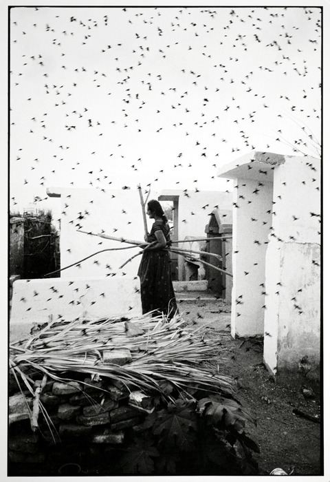 part of Graciela Iturbide’s series on the Juchitan indigenous culture, a major focus of her work from 1979 to 1988. Located in the state of Oaxaca, Mexico, the Juchitan is a matriarchal society in which women are in charge of everything from commerce to religious ceremonies. In The Cemetery, taken in 1988, Iturbide depicts a woman carrying firewood through a cemetery made up of modest adobe tombs. Swallows circle around, filling the frame of the image. The scene is beautifully surreal, but also foreboding. The photographer creates her own reality, moving past Mexico’s Catholic traditions into Indian mysticism.” source of image and quote: ICP