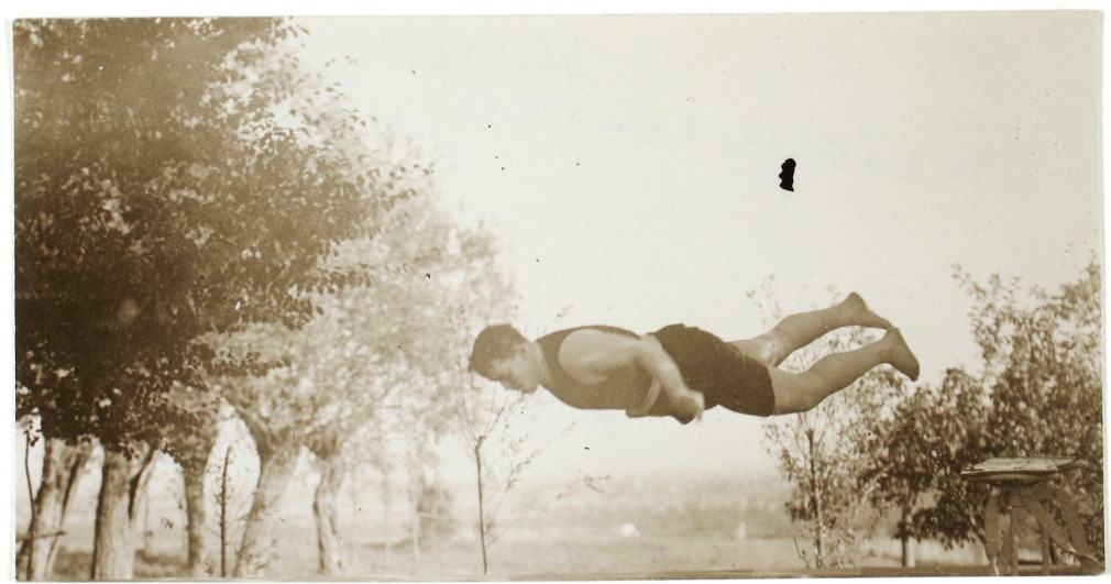 Jacques-Henri Lartigue :: Exploits of my cousin Jean Haguet, pond at Rouzat, France, 1911 / source: howardgreenberg