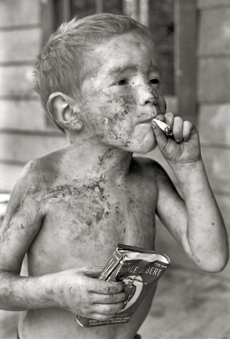 William Gedney :: Prince Albert / A Cornett boy smoking and holding tobacco can, Leatherwood, Kentucky, 1964