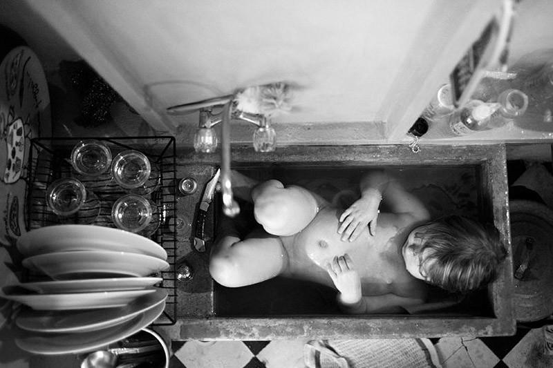 In 1919 Watkins made her first ground-breaking domestic still lifes, taking as her subject such mundane scenes as a kitchen sink and bathroom fixture. In Domestic Symphony, the graceful curve of the porcelain recalls the fern-like scroll of a violin. Again, the composition is striking: the lower three-quarters of the image is in darkness, anchoring the forms and volumes in the upper portion. Still Life — Shower Hose (1919) shows a rubber hose rhythmically looped around a towel rack.