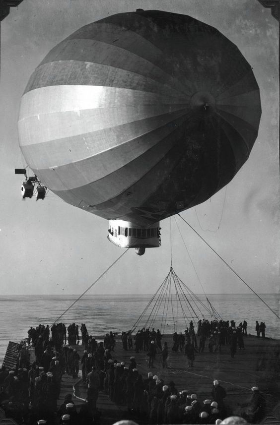 Airship USS Los Angeles landing on carrier USS Saratoga, 27 January 1928. | src War History Online and