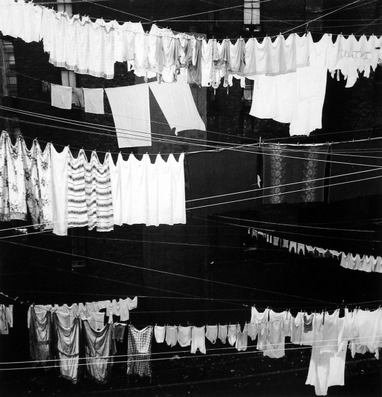 Rebecca Lepkoff :: 20 Prince Street Clothesline, Lower Manhattan, NYC, 1947. Gelatin silver print; printed 1960′s. From ‘Laundry Lines’ Exhibition at Howard Greenberg Gallery, 2015
