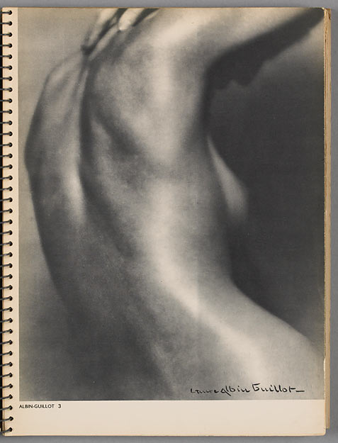 Laure Albin-Guillot :: Feuilles mortes, 1948, tirage au charbon. Illustration pour les Préludes de Claude Debussy. La page est composée de deux parties: à gauche se trouvent dessinées les notes introductives et le titre du Prélude illustré; à droite, le tirage au charbon illustratif est maintenu dans des fentes par ses quatre coins. Cet ensemble constitue la treizième des 23 illustrations du port-folio intitulé ‘Illustrations pour les Préludes de Claude Debussy’. Au recto, à l’intérieur de la page double, à gauche, portée calligraphiée avec la mention “Lent et mélancolique”; au recto, à l’intérieur de la page double, à gauche, titre calligraphié: “Feuilles mortes”; au recto, en bas à droite, sur le tirage, signature manuscrite: “Laure Albin Guillot”. | Dead leaves, 1948, charcoal print Illustration for the Preludes by Claude Debussy. The page is made up of two parts: on the left are the introductory notes and the title of the illustrated Prelude; on the right, the illustrative charcoal print is held in slots by its four corners. This set constitutes the thirteenth of the 23 illustrations in the portfolio entitled Illustrations pour les Préludes by Claude Debussy. On verso, inside the double page, on the left, handwritten: “Slow and melancholy”; on verso, inside the double page, on the left, handwritten title: “Dead leaves”; on verso, bottom right, on the print, handwritten signature: “Laure Albin Guillot”. | src Musée Français de la Photographie