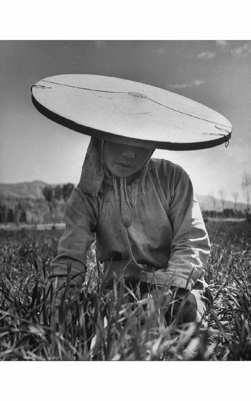 Mark Kauffman :: Farm woman made her own hat of white muslin and a bamboo hoop set, 1947 – Life magazine / src: pleasurephoto