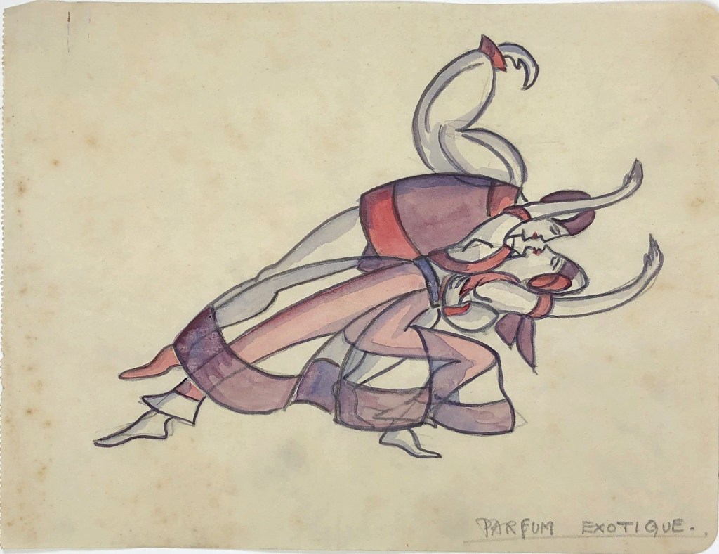 Loïs Hutton ~ «Studio Rythme et Couleur: Loïs Hutton – Hélène Vanel – Kathleen Dillon», ca. 1920, Gouache sur papier. Tirée d’un carnet de croquis. | src interencheres + interencheres