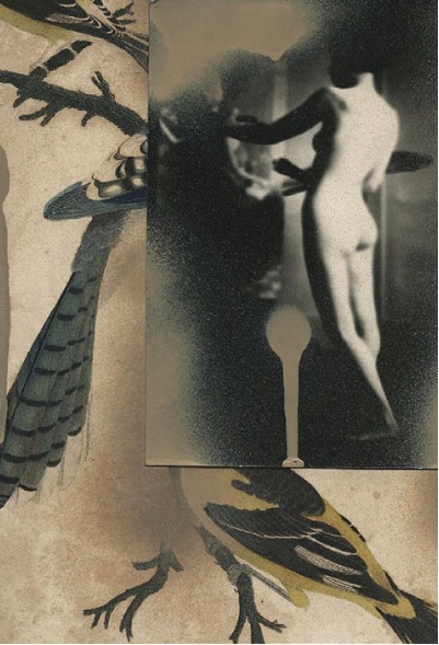 Paul Cava :: Bluejay | 1980 | photograph and paint on antique engraving | via gacougnol