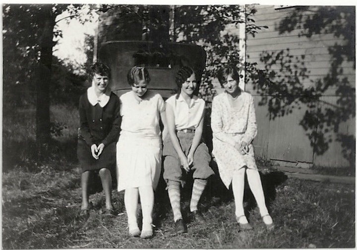 Vintage snapshot of four young women sitting on car bumper 1920’s / src: Etsy