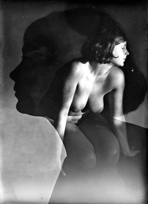 :: Female nude and profile (negative montage). 1930′s, printed later. Gelatin silver contact print.