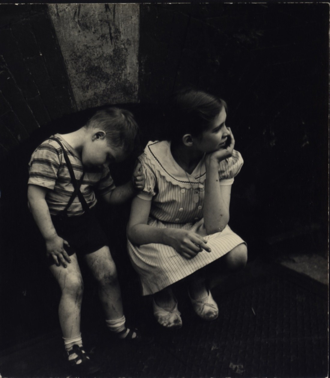 Sandra Weiner :: Children crouching over a closed basement door, NYC, ca. 1945 | src l’oeil de la photographie via yama-bato
