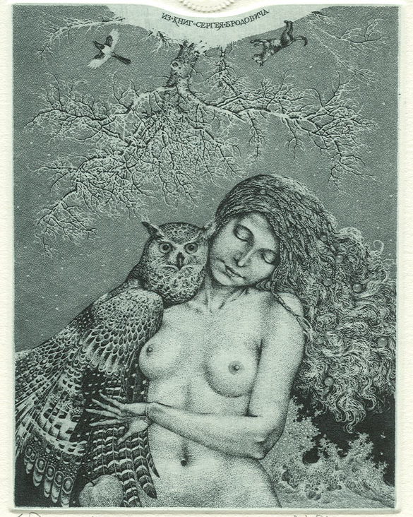 Fini’s owl mask originates with the New Year’s Eve party called the Bal des Oiseaux given at the Palais Rose on the avenue Foch, Paris, by Vicomte Charles Benoist d’Azy at the end of 1948. Webb writes, “she wore an owl mask of white feathers with headdress and gown of black-and-green-striped feathers. A series of dramatic photographs of her in this costume, as well as in the costumes for other balls of 1947 and 1948, were taken by Andre Ostier and widely published in newspapers and magazines, and Pauline Reage used the same mask in the final scene of her erotic novel Histoire d’O (Story of O), which was later illustrated by Leonor.”
