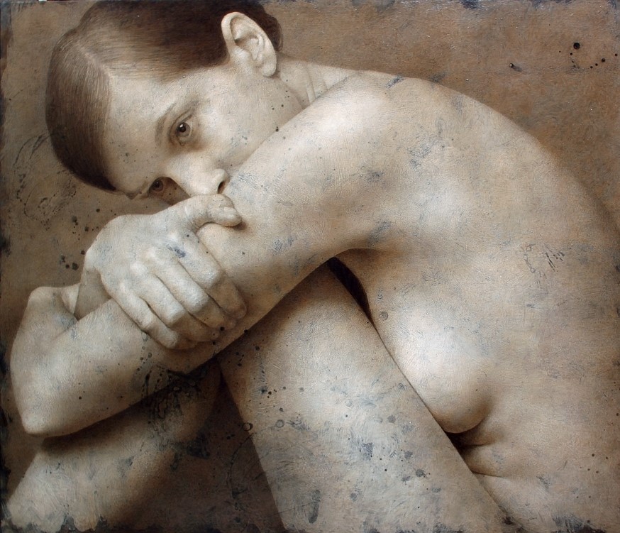 Although the long hair of Ben-Yusuf’s subject hides her eyes, it appears that this woman stares out at the pomegranate she holds as if pondering whether to act. Her other arm rises upward in a gesture that suggests a certain hesitation. The Odor of Pomegranates captures the tense moment of decision.