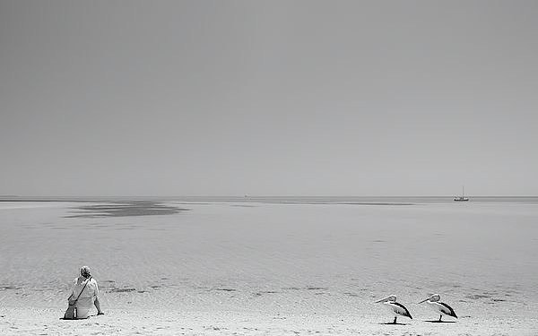 Woman feeding a pelican, ca. 1940s [as a follower made us note, the lady’s dress looks more like from 1920s so, maybe, the snapshot was misdated, or her outfit simply outdated]. Pigment print on Hahnemule paper | src Life as Art: The American Snapshot