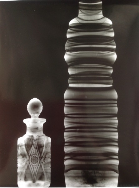Nude figure of a young woman covered by an inverted glass, which becomes her garment. The translucent glass allows the curves of her figure to be seen, but it still provides a modest covering. The shape of the glass is reminiscent of dress styles of the mid-1800s, with a wide hooped skirt and narrow waistline. Rosa Rolanda painted self-portraits from 1945 and 1952 depict the same somber persona. The simple style of her features is similar to those found on folkloric images of the sun reproduced in ceramics, wood, and textiles. Here, crowned by the sun, she is surrounded by shells, a deer, and a ruler.