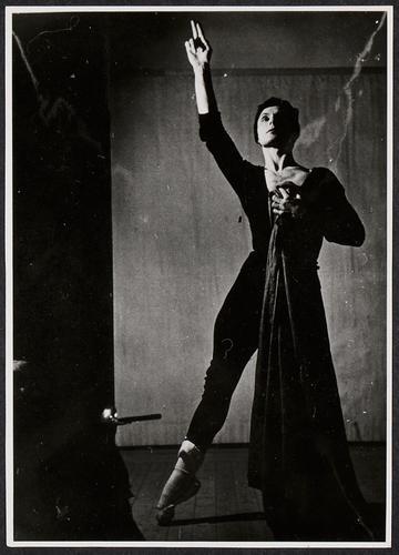 Enar Merkel Rydberg :: Carina Ari som koreograf instruerar dansarna under arbetet med “De fåvitska jungfrurna” på Operan 1962. | Carina Ari as choreographer instructs the dancers during the rehearsal of Les Vierges Folles in 1962. | src DansmuseetAnna Riwkin :: Carina Ari (seen from behind reflected on the back mirror), no date (1960s). Title “Carina Ari” and “517” on verso. | src Moderna Museet