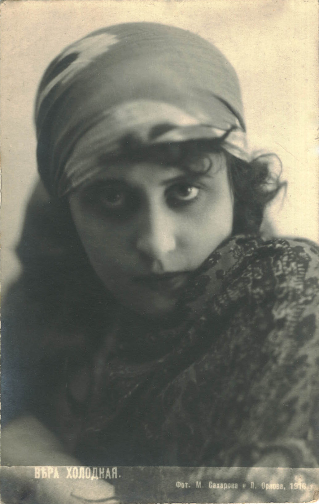 Russian first silent movie star Vera Kholodnaya. Portrait, in a headdress. Fot. M. Sakharov and P. Orlov, 1916. Postcard. | src Presidential LibraryVera Kholodnaya. Portrait, Portrait, profile to the left, looking down. Fot. M. Sakharov and P. Orlov, 1916. Postcard. | src Presidential LibraryVera Kholodnaya. Portrait, head turn 3/4 to the left, headscarf tied behind, 1914-1919. Postcard. | src Presidential LibraryVera Kholodnaya. Portrait, in a white blouse with ruffles, in a white hat. Phot. M. Sakharov and P. Orlov, 1916. Postcard. | src Presidential LibraryRussian first silent movie star Vera Kholodnaya. Another postcard of the image on top. | src Flickr