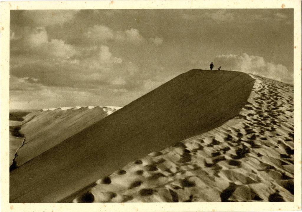 Paul Jsenfels :: Kurische Nehrung (Ostpreußen). Auf den Wanderdünen [65 m. über dem Haff], 1950. | Curonian Spit that separates the Curonian Lagoon from the Baltic Sea coast (East Prussia, now Russia -and Lithuania). On the hiking dunes [65 m. Above the (Curonian) lagoon], 1950. | src and hi-res Europeana