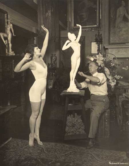 Howard Chandler Christyat work. Dorothy Knapp modeling for “The Water Nymph,” Christy Garden Apartments, Woodside, Long Island, 1925.