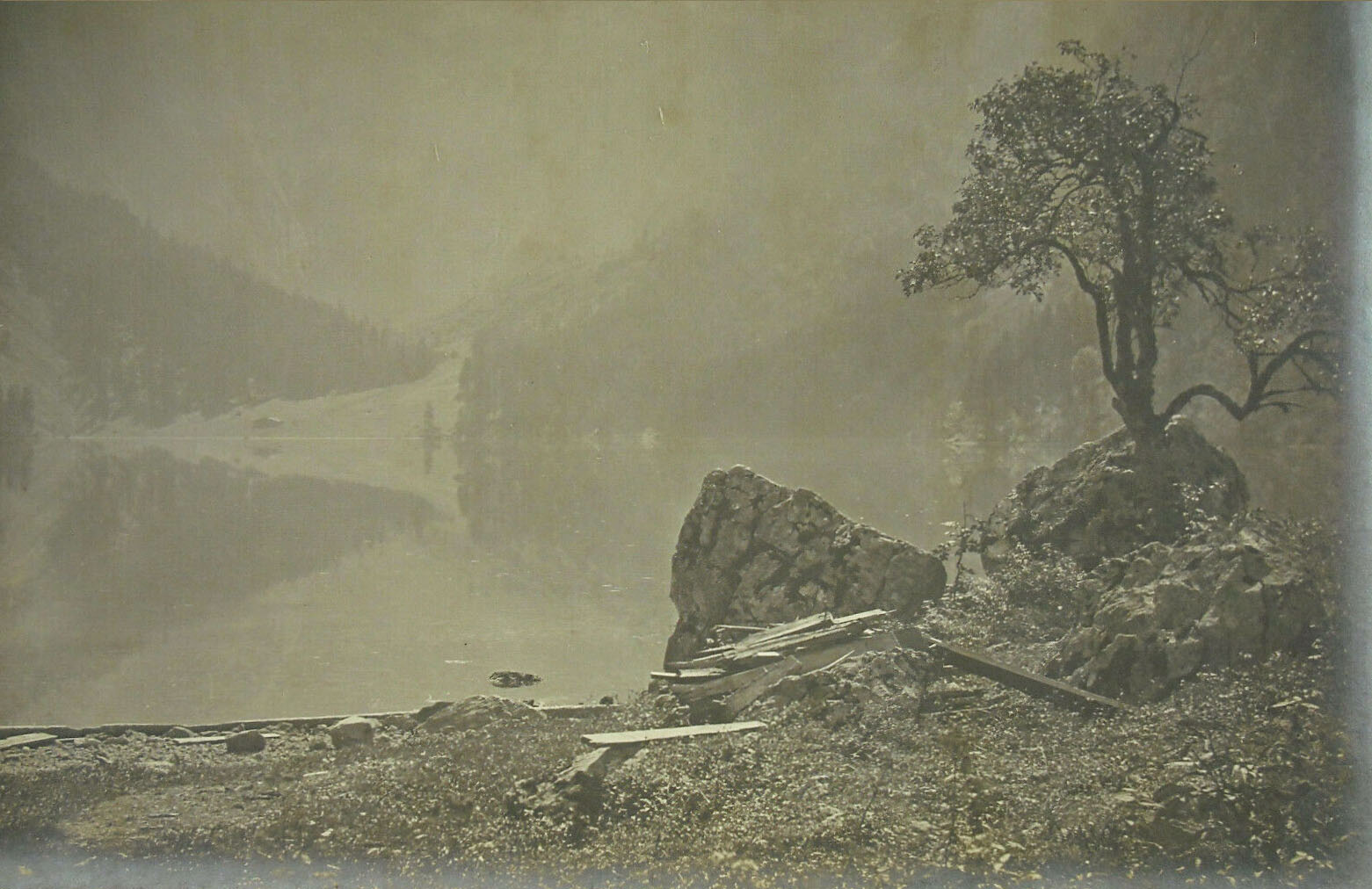 Mountain Lake · 1903 Lac de montagne, lieu à déterminer. Lac de Monteynard (?) Photographie originale de 1903, fixée sur carton. Signé “Dufour” en bas et dédicacé au Dr Notin. | src eBay