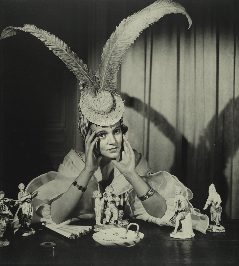 Feather Hat, ca. 1953 Madame d’Ora :: Junge Frau mit Federhut und Porzellan-Figuren, um 1953. | src MK&G ~ Museum für Kunst und Gewerbe (Hamburg)