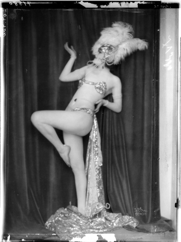 De danseres Maria Ley met veel glitters in haar pikante outfit. Wenen, Oostenrijk, 1926. Serie van 6 foto’s. | Dancer Maria Ley glittering with her spicy outfit. Vienna, Austria, 1926. From a series of 6 photos. | src Het Geheugen Fotocollectie Het Leven