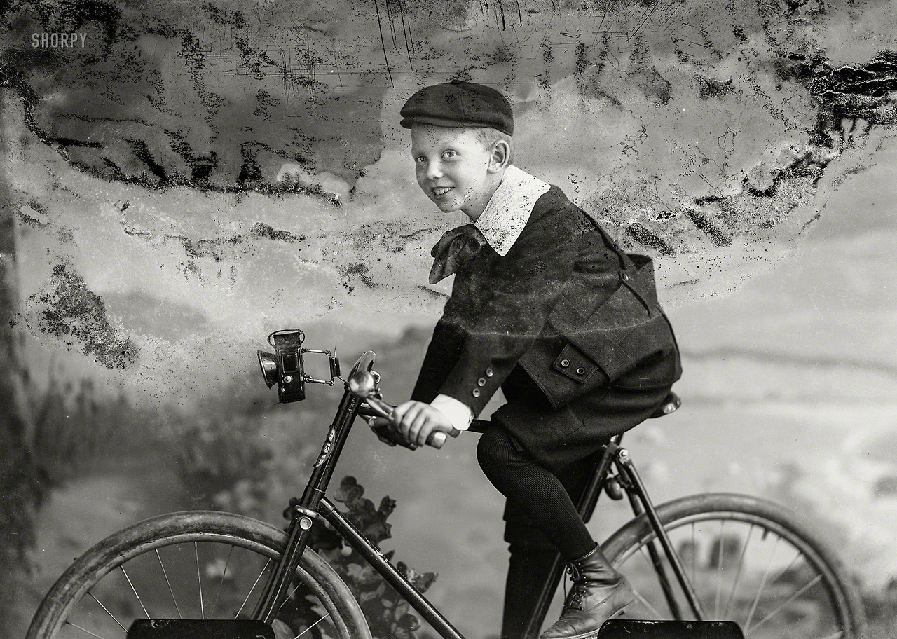 “Boy on bicycle ca. 1895-1916” is the improvised title of this dry plate from the C.M. Bell portrait studio in Washington, D.C., whose legacy is a collection of some 30,000 glass negatives recently digitized and catalogued by the Library of Congress