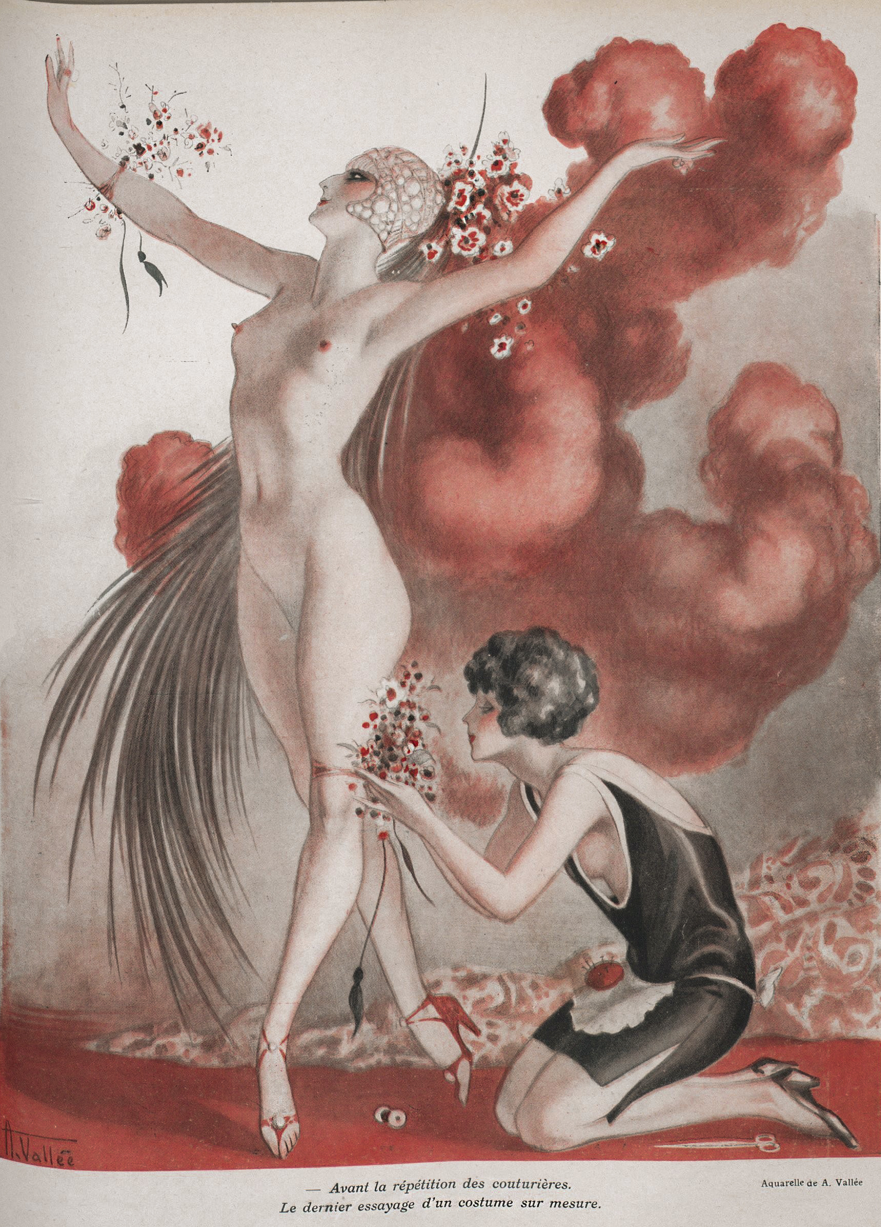 “Le dernier essayage d’un costume sur mesure”. Acquarelle de A. Vallée. Paris-Plaisirs: revue mensuelle esthétique et humoristique, 1926. nº 48. Page 11. | src BnF ~ Gallica