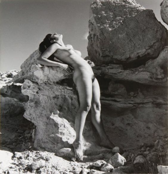 André de Dienes :: Nu aux rochers / Nude with rocks, ca. 1960, vintage silver print. / source: gros-delettrez