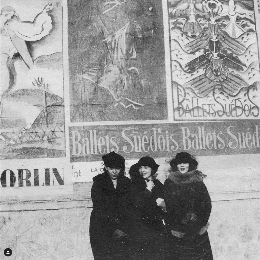 Dancer Carina Ari with two colleagues from the Swedish Ballet in the spring sun in front of (or actually under) four of the Swedish Ballet’s huge posters. The photo was probably taken during the company’s first tour in Spain in 1921. In the background are several of the Swedish Ballet’s color posters, drawn by Pierre Mourgue, Orsi and Eldsten. • src Dansmuseet’s InstagramVarious posters for the Svenska Baletten (Ballets Suédois), ca. 1920. | src Dansmuseet