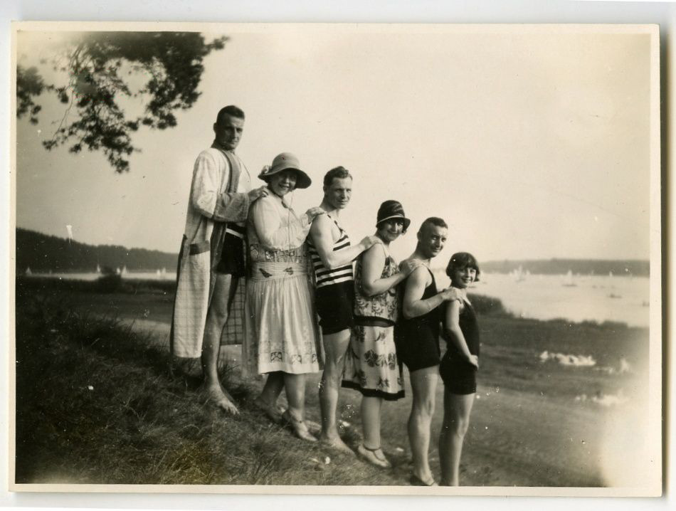 Vintage snapshot of people in the beach lined up, 1930′s / src: eBay