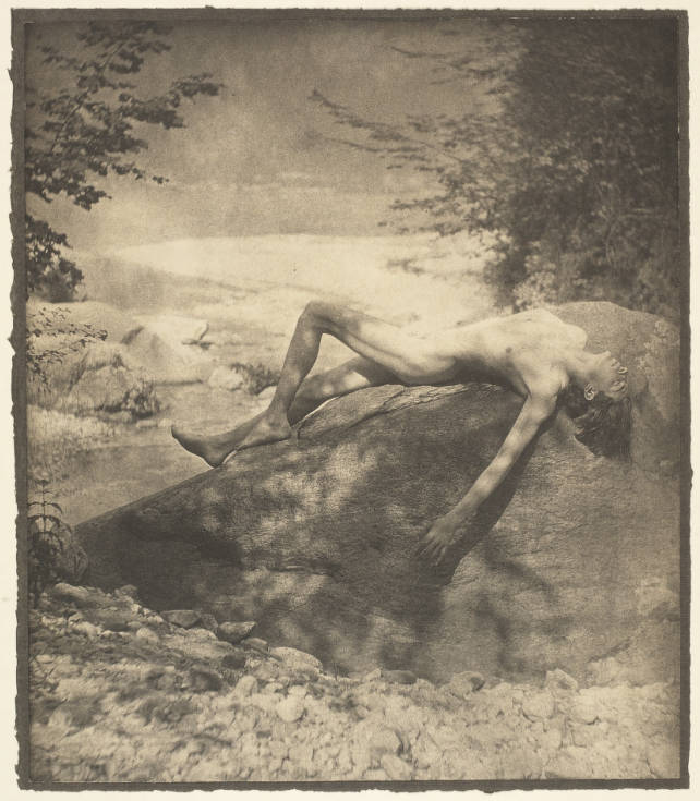 Nude man lying on rock, 1914 The Parrish Sisters :: Nude man lying on rock beside stream. Unsigned, 1914. | src SLPL, Grace and Williamina Parrish Photograph Collection