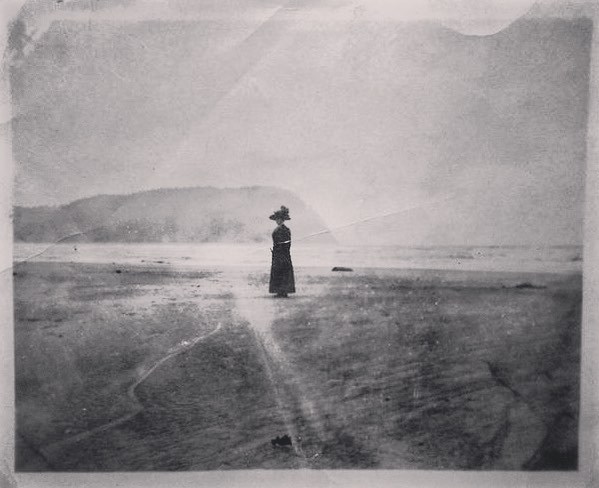 Vintage photograph of bather sitting on the wet sand, early 1900′s / src ebay via