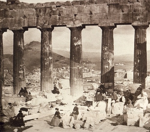 Back then in the Acropolis (the Caryatid porch of the Erechtheion) Athens, circa 1865 / source: