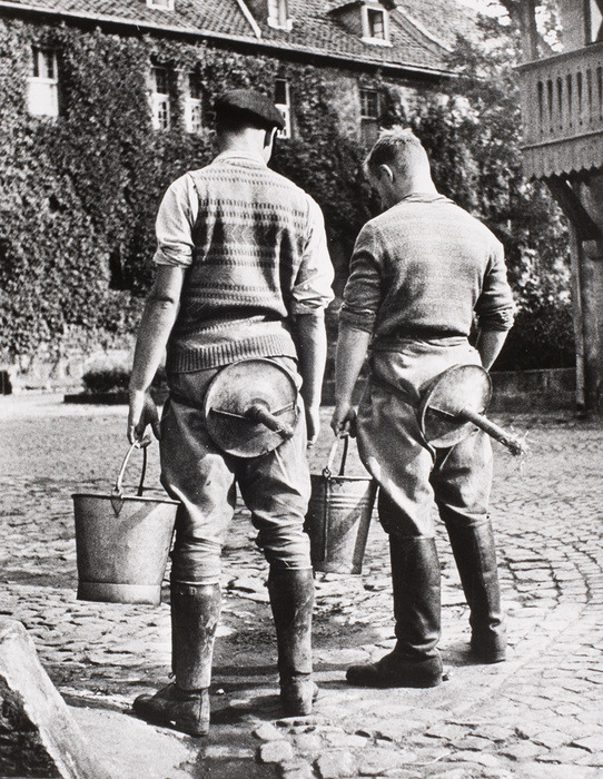 Alfred Eisenstaedt :: Agricultural students with milking stools, East Prussia, 1934 / src: ICP more [+] by this photographer
