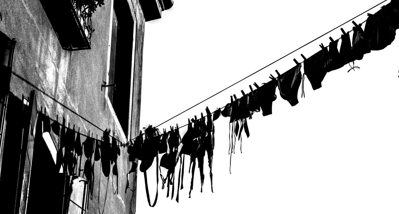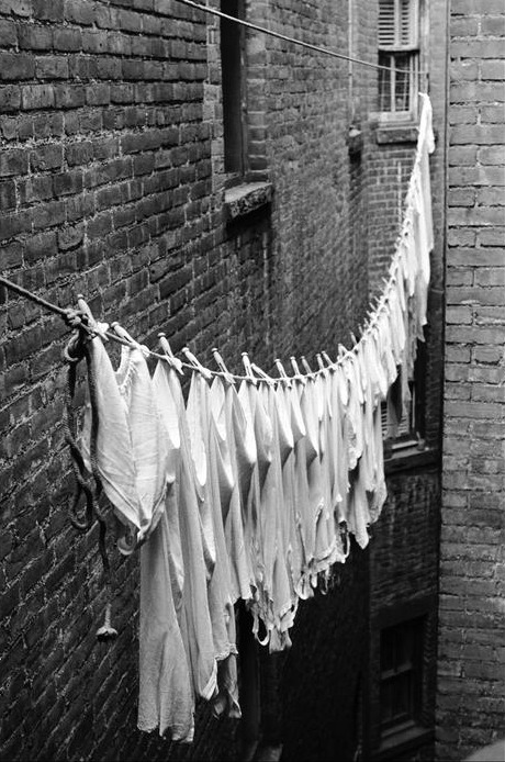 Woman Hanging Clothes on Clothesline, probably 1940′s / source: Ebay